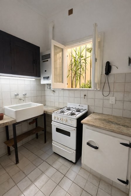Departamento a metros de Av. Córdoba, reciclado a nuevo, a la calle. Amplio ventanal que da un ambiente con 2 placares, baño nuevo, cocina reciclada con ventana al patio del Edficio.