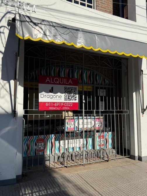 Alquiler de local comercial de 28 m2 a metros de calle French, frente a las oficinas de Anses y lindero a Registro Civil de Ezeiza. Cuenta con cortina de enrollar para seguridad, toldo, puertas y vidrieras